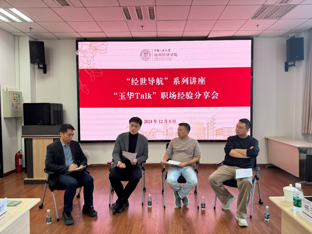 交流座谈会结束后,李智勇、卢鹍鹏、楼欣宇三位嘉宾参与“经世导航”系列讲座——“玉华Talk”职场经验分享会,陈占明主持。