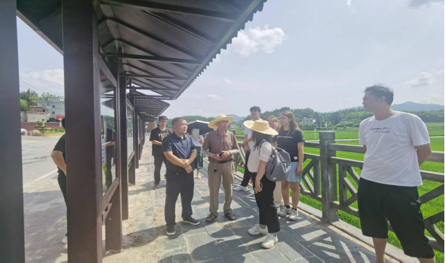 ▲调研团在茅坪村水稻田前合影