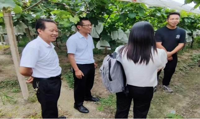7月16日上午,调研团抵达绥宁县东山乡东山村红提产业基地,实地调研农业产业园助力农村农民脱贫致富的具体路径。绥宁县东山乡东山村地处湘西南山区,四周环山而呈盆地地形,溪流穿村而过形成独特气候,土壤富含有机质且透气性强,东山村将当地的地理自然优势与红提种植相结合,转化成为东山村村民们的聚宝盆。目前,东山村的红提种植面积已由最初的200亩扩大至现在的5000亩,与周边县市的电商平台、大型商超及深加工企业合作,市场认可度持续提升,产业集聚效应初步形成,为村集体经济增长注入新的活力。