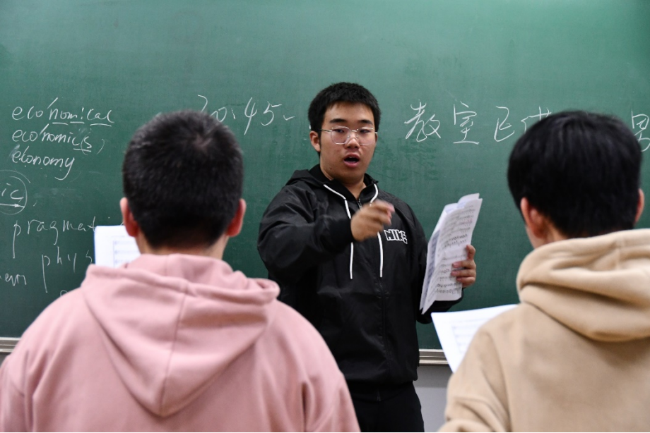 在老师的指导下,同学们积极参与排练,认真听取意见,相互鼓励,不断提高合唱水平。精诚所至,金石为开,同学们不仅在音准、节奏和声部配合等方面取得了明显的进步,也对“人大组歌”背后的红色精神有了更深刻的体悟。