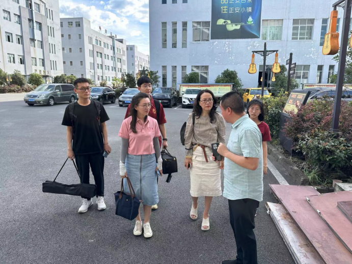 随后,调研团来到贝加尔吉他工厂,调研吉他自主品牌发展历程和吉他电商销售发展历程。