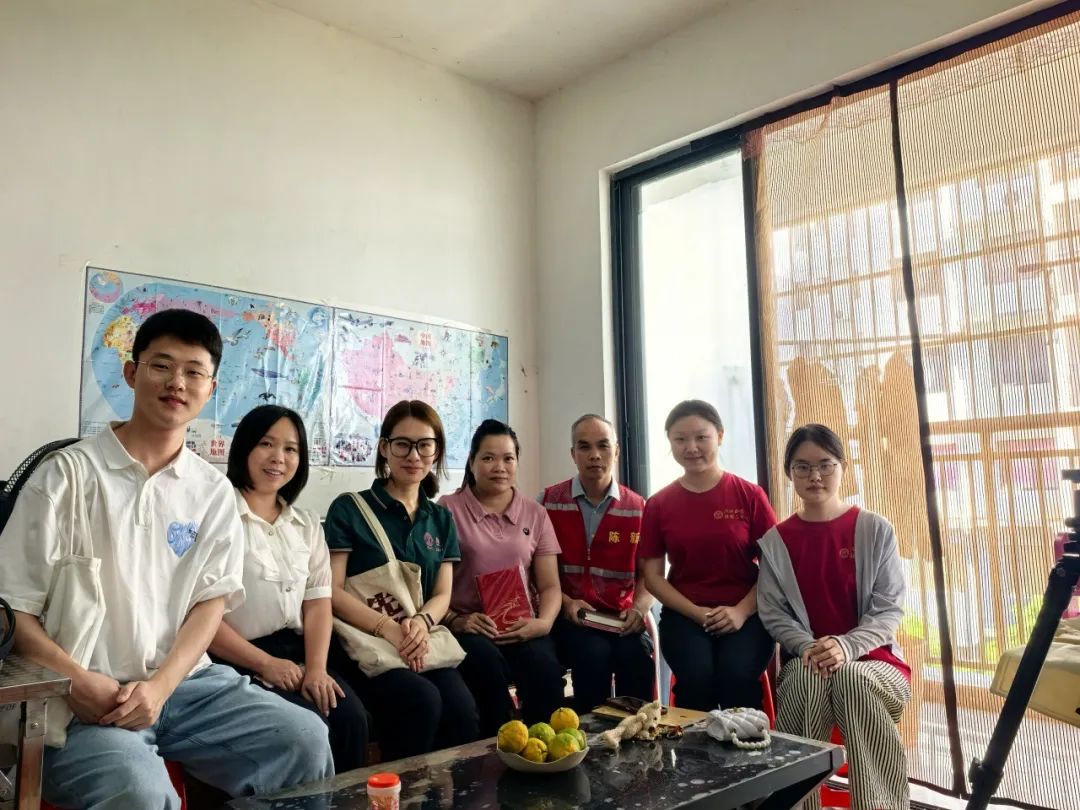 ▲本科生尹歆雅访谈天等镇龙岩社区驻村第一书记陈新