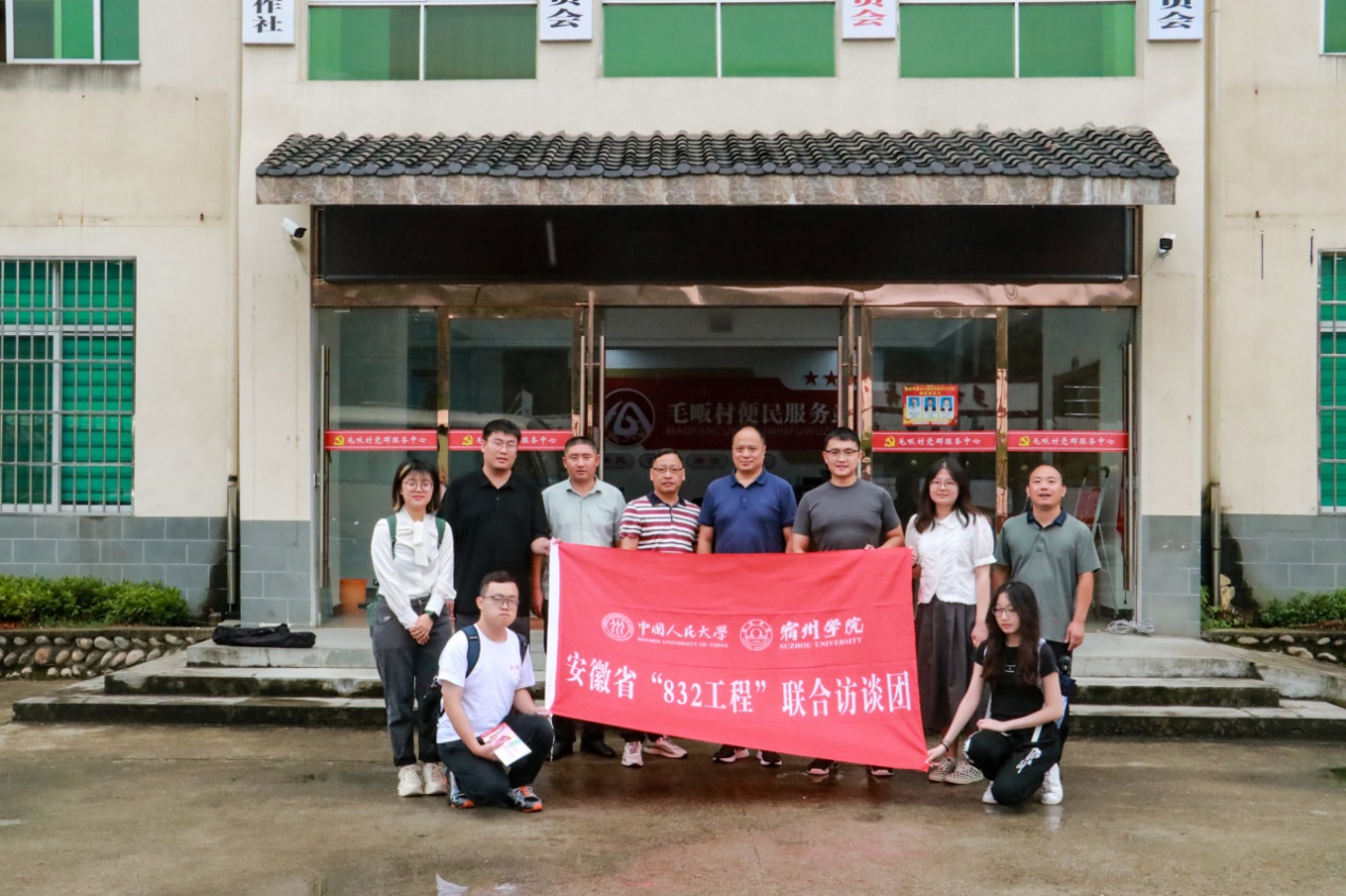 2023年8月,中国人民大学与宿州学院组建田间地头队,赴安徽省开展“832 工程” 访谈和调研工作,记录安徽脱贫攻坚的伟大成就,为世界减贫事业提供安徽案例、安徽经验。同时期望加强中国人民大学与宿州学院在学科建设、人才培养、科学研究和社会服务等方面的合作交流, 共同推动两校高质量发展。