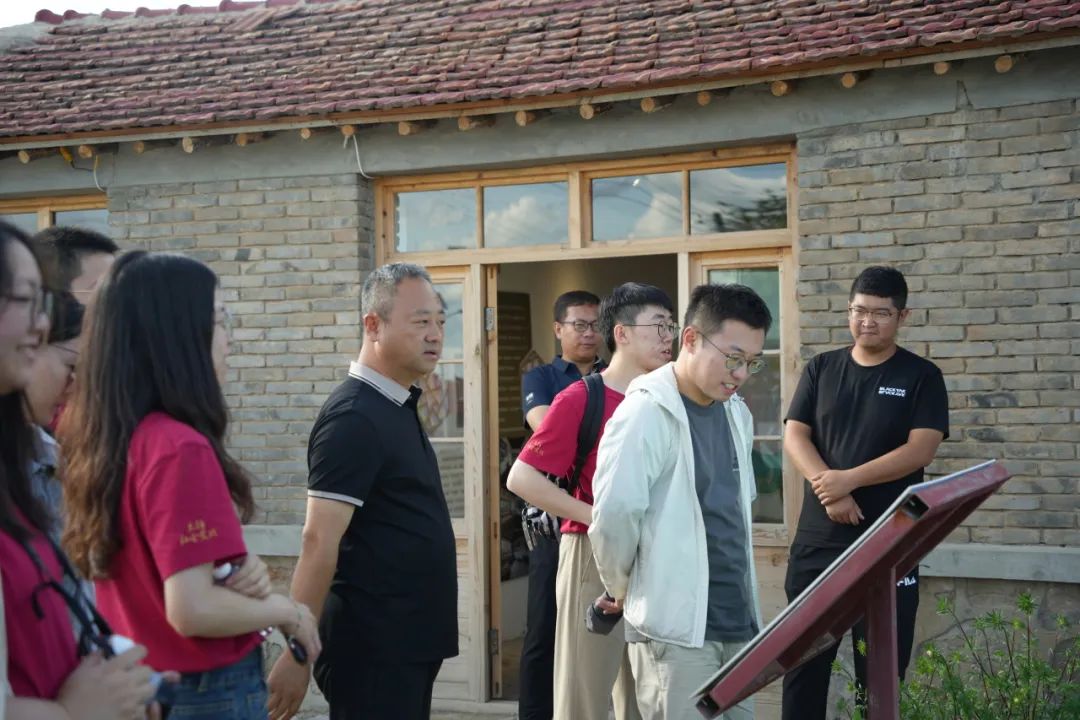 ▲访谈团老师同学与老掌沟书记张积凯交谈