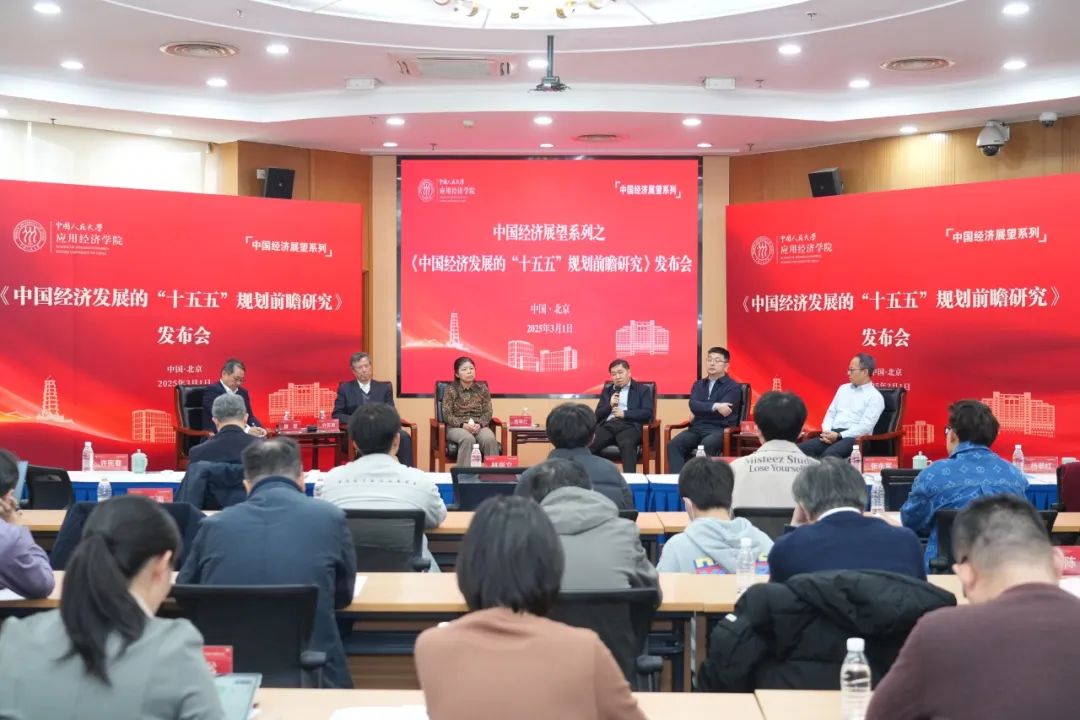 “中国经济展望”研究团队发布了《中国经济发展的“十五五”规划前瞻研究》主要成果。作为“中国经济展望”系列研究报告开篇的《中国经济发展的“十五五”规划前瞻研究》,在简要评估“十四五”规划执行情况的基础上,聚焦宏观经济发展目标、新质生产力培育和高质量发展,对“十五五”规划时期的经济增速、就业、国民收入分配、区域协调发展、乡村振兴、基础设施和公共服务两个均等化等重要方向作出前瞻性预测,对战略性新兴产业的未来趋势进行展望,并探索性提出中国经济发展趋势和政策选择的中国人民大学“十五五”规划方案,为我国在“十五五”时期加快构建新发展格局、推动经济高质量发展提供理论支撑。