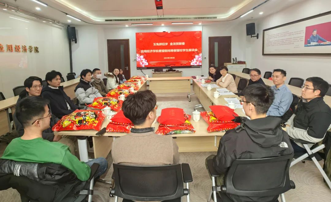 情系师生送祝福,龙腾虎跃迎新春。2月2日下午,英雄联盟下注 在明德主楼405会议室召开2024年寒假留校学生座谈会,学院党委书记宋东霞,副院长魏楚、陈占明、裴建锁,党委副书记、纪委书记孙浩爽看望慰问留校学生,为同学们送上定制围巾、新年礼包,并向同学们致以新春祝福。