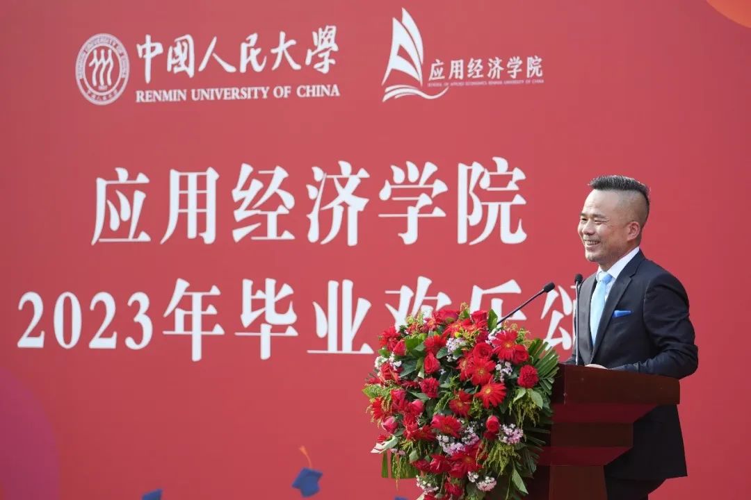 学院院长、党委副书记郑新业为全体毕业生讲授步入社会第一课。他寄语毕业生,要保持健康,加强运动,练就健康的体魄;要善待他人,三五好友相伴左右是人生之福;要善待自己,脚踏实地、勤奋努力,以更低的成本、更高的效率发挥专业本领、实现人生价值;要守住底线,做政治上的明白人,经济上的清白人,在步入社会后,成为德智体美劳全面发展的社会主义建设者和接班人,成为在社会主义现代化建设中可堪大用、能担重任的栋梁之才。