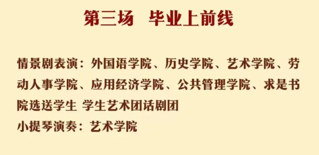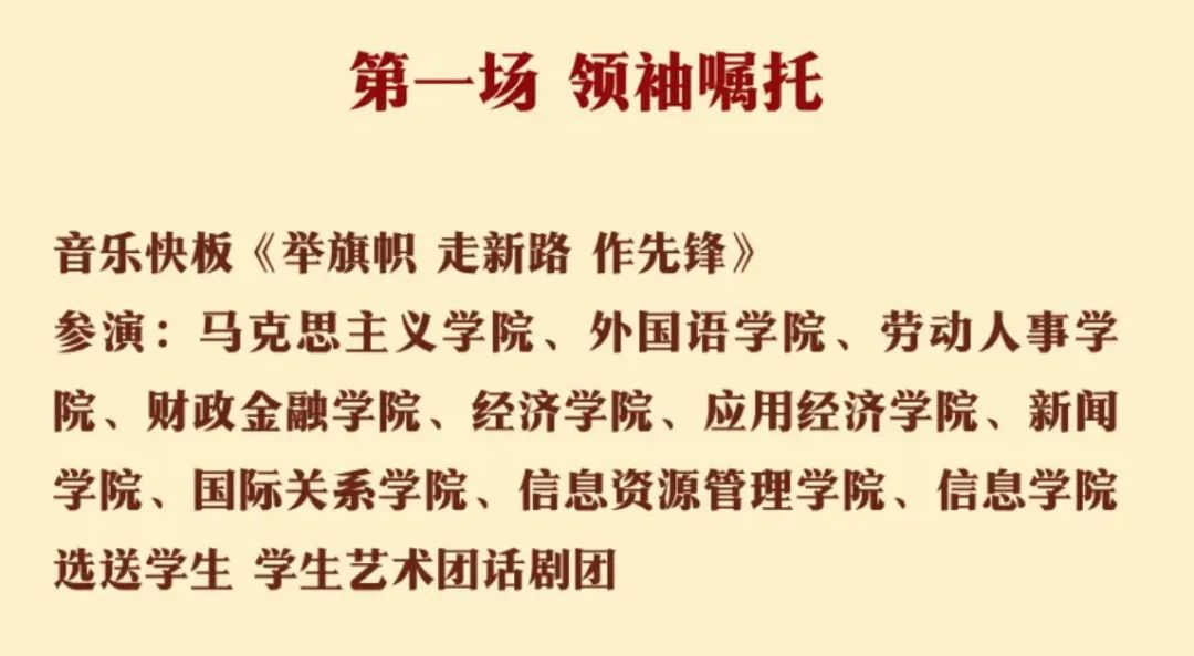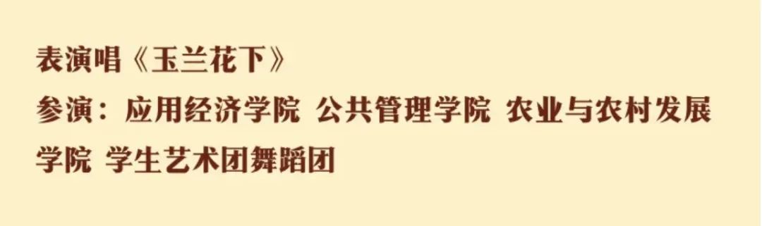 应经学子以合唱、朗诵、话剧等形式在开幕“何为先锋?先锋何为!”等近十个环节中呈现精彩演出。应经-农发-公管联队一曲《玉兰花下》,以柔和温婉的曲调,献礼人民大学的恢弘历史,赢得满堂喝彩。
