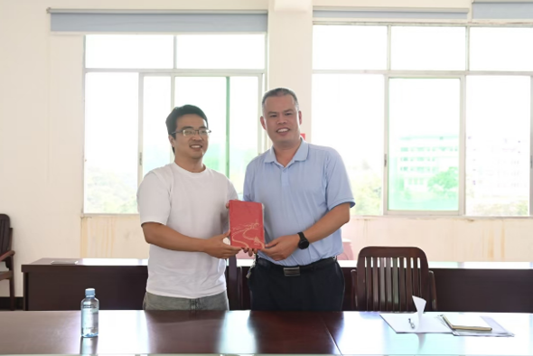 ▲本科生李楠访谈三石镇党委书记韦恢汉