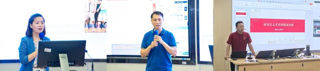 陈占明、黄阳华、孙浩爽分别介绍学院本科、研究生人才培养情况和“五育并举”培养体系。