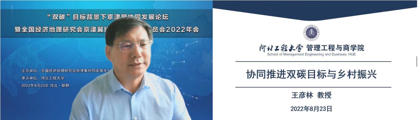 由全国经济地理研究会京津冀协同发展专业委员会主办、河北工程大学承办的“双碳”目标背景下京津冀协同发展论坛暨全国经济地理研究会京津冀协同发展专业委员会2022年会,于2022年8月23日采用线上方式顺利召开。