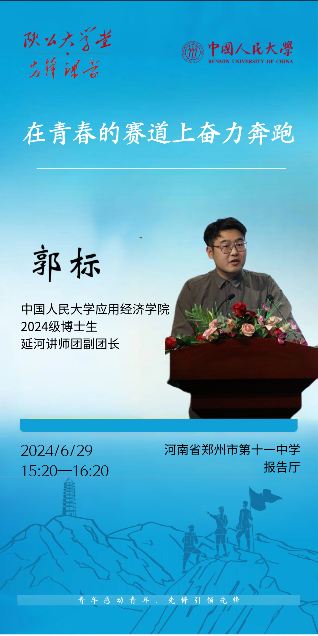 英雄联盟下注-英雄联盟博彩 2024级博士生、延河讲师团副团长郭标在河南开讲,在郑州市第十一中学作题为“在青春的赛道上奋力奔跑”的主题报告,重温了习近平总书记在中国人民大学考察调研时重要讲话精神,围绕“青年与中国式现代化”主题,从中国式现代化的概念、特征和青年与中国式现代化的关系三方面出发,详细阐述了在中国式现代化的时代背景下中国青年的使命与担当。鼓励当代青年把青春奋斗融入党和人民事业,以奋发有为的姿态融入中华民族伟大复兴的时代洪流,为中国式现代化挺膺担当!