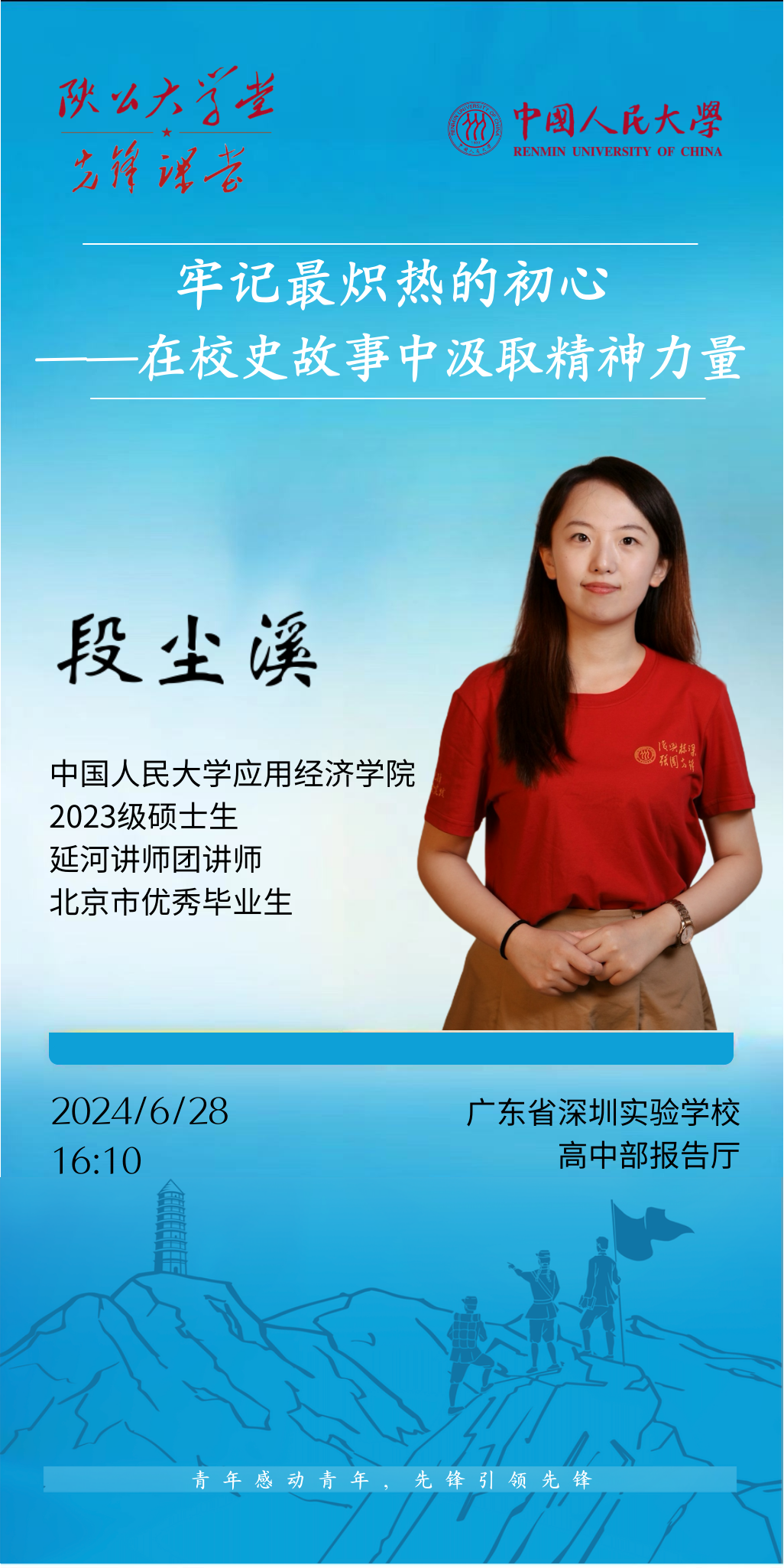 英雄联盟下注-英雄联盟博彩 2023级硕士生、延河讲师团成员段尘溪在广东开讲,在深圳实验学校作题为“牢记最炽热的初心——在校史故事中汲取精神力量”的主题报告,从“忠诚、团结、紧张、活泼”四个方面为同学们讲述党创办中国人民大学的故事,勉励同学们牢记初心,永远奋斗。