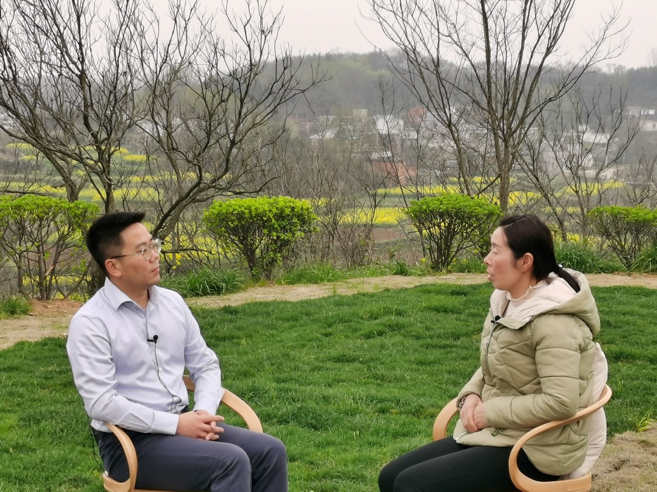 ▲在山西省大同市云州区,本科生魏子轩访谈全国脱贫攻坚先进个人、山西省云州区峰峪乡党委副书记李成,从脱贫攻坚中感悟党的领导力
