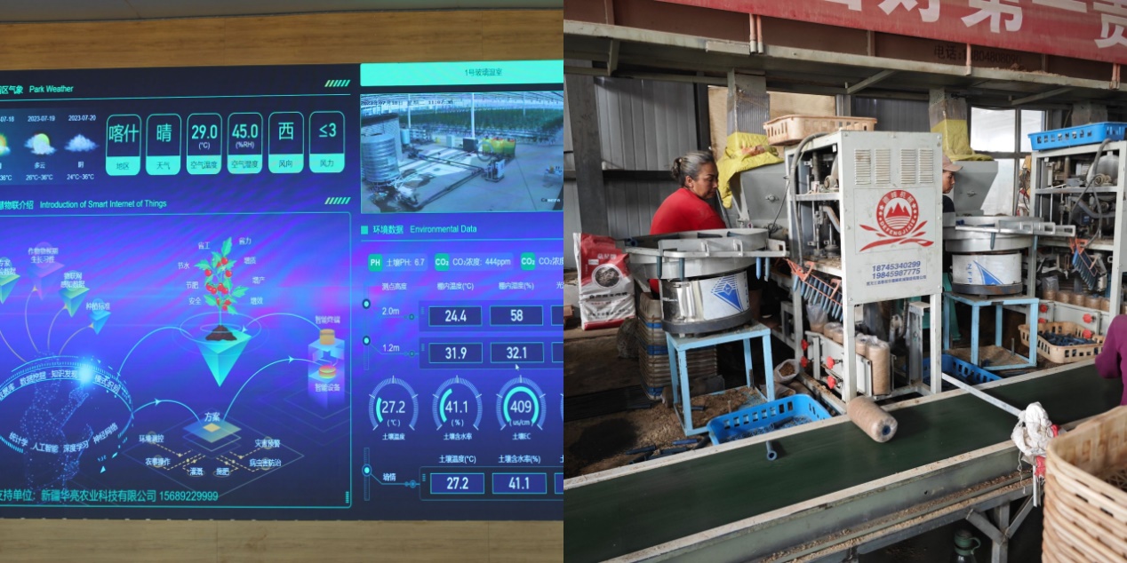 ▲农业生产技术扩散到边疆——调研新疆疏附县木什乡戈壁滩农业大棚