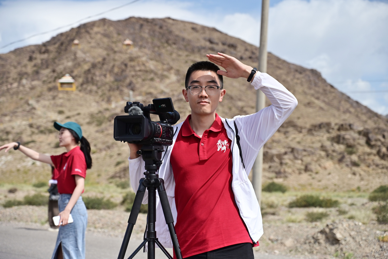▲在新疆克州乌恰县,博士生陈冠锟访谈手刻十多万中国石守护边境的“人民楷模”布茹玛汗·毛勒朵奶奶,该片段作为青年学子暑期参与社会实践的代表性片段在央视播出