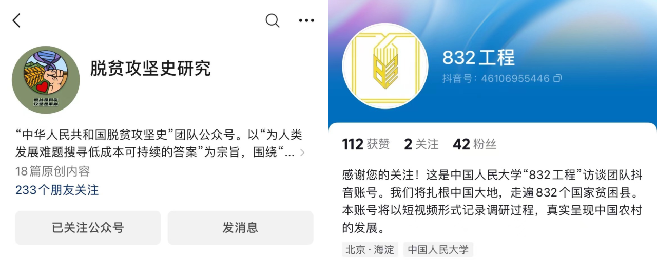 微信公众号和“832工程”抖音账号
