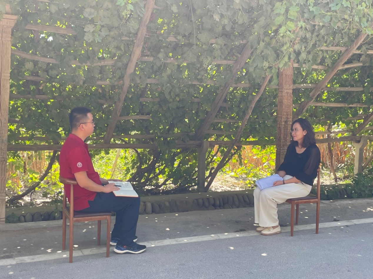 ▲访谈团在新疆克州阿克陶县调研