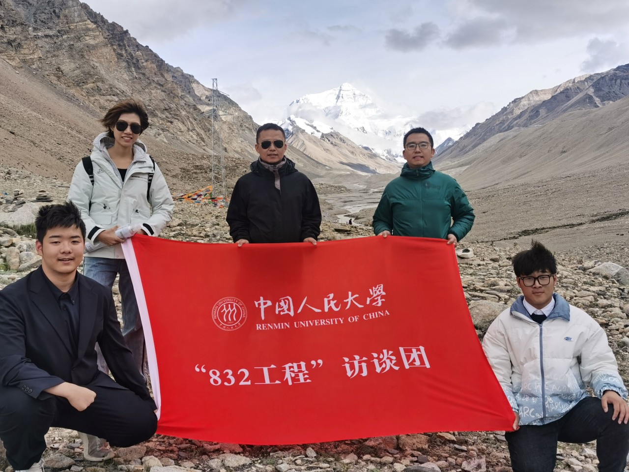 ▲把“832工程”旗帜带到珠峰脚下