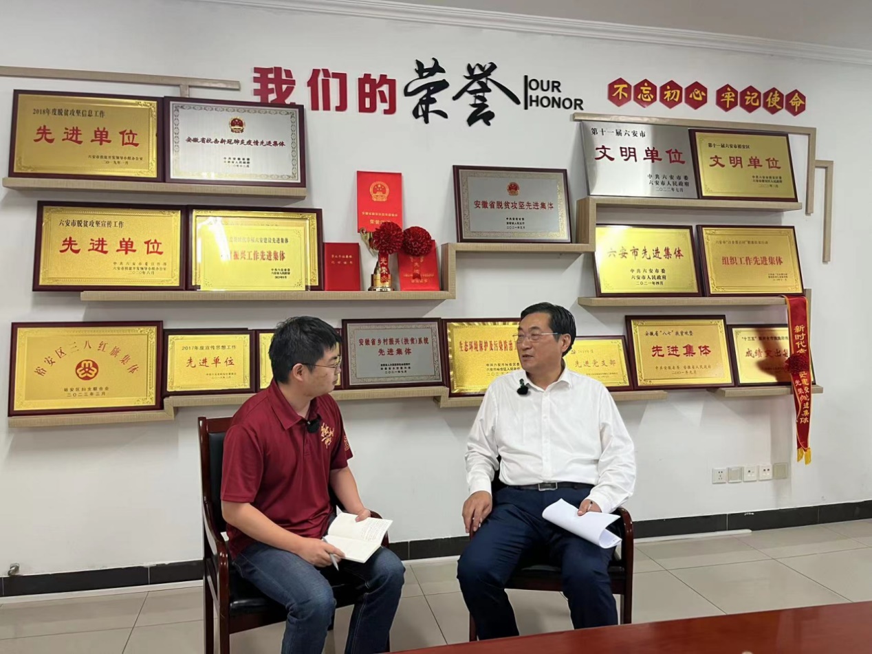 ▲在安徽省金寨县,博士生孔儒婧访谈全国脱贫攻坚先进个人、中国共产党第二十次全国代表大会代表余静