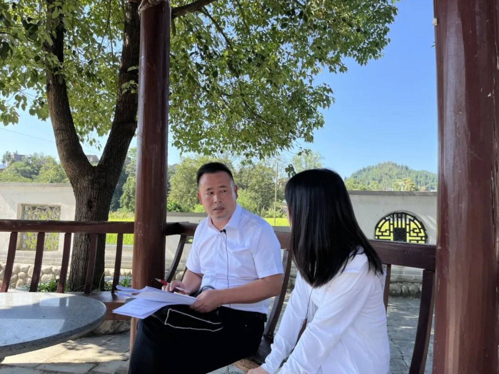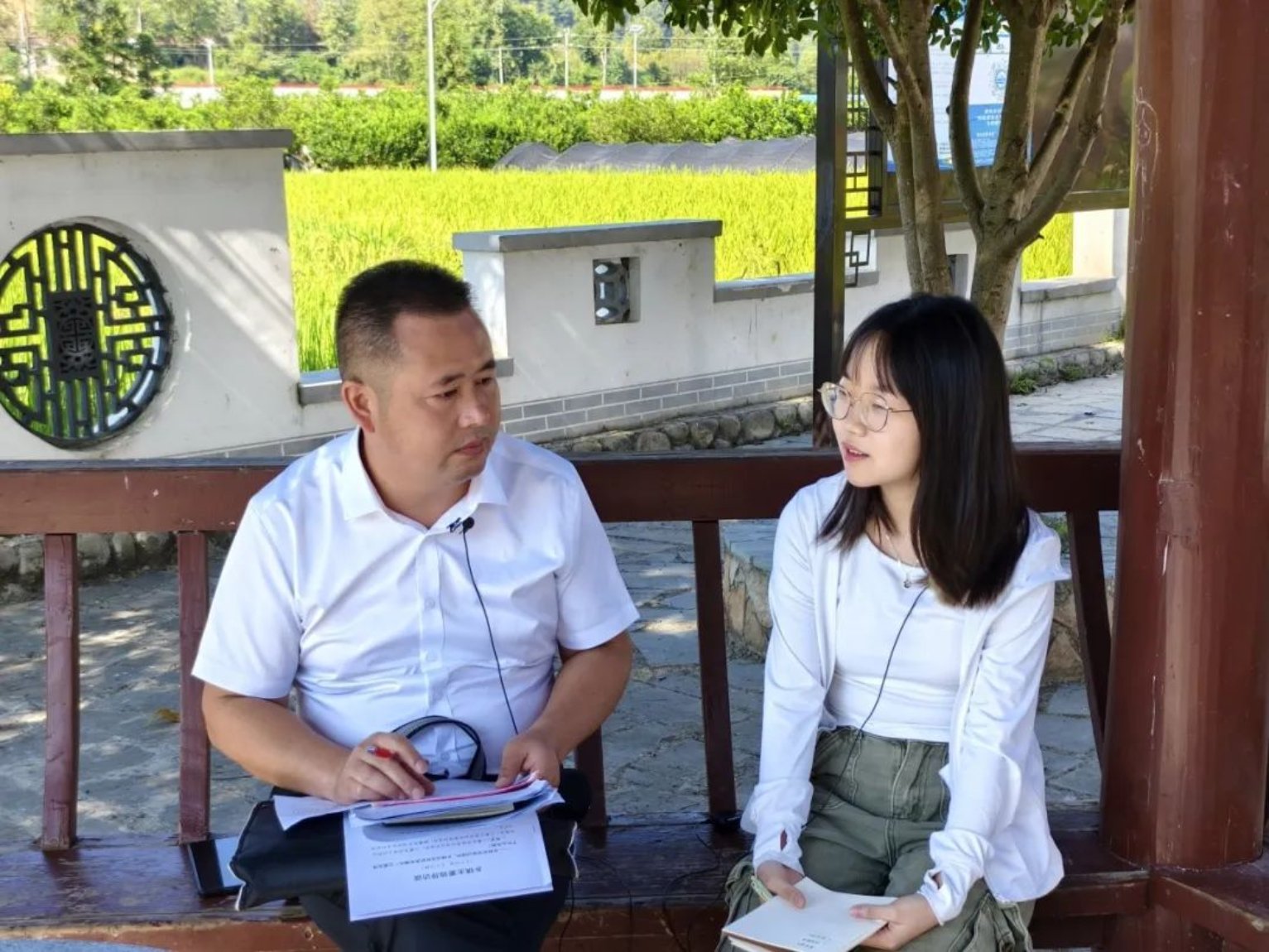 ▲北京大学老师蔡宇涵访谈三穗县副县长罗相洪
