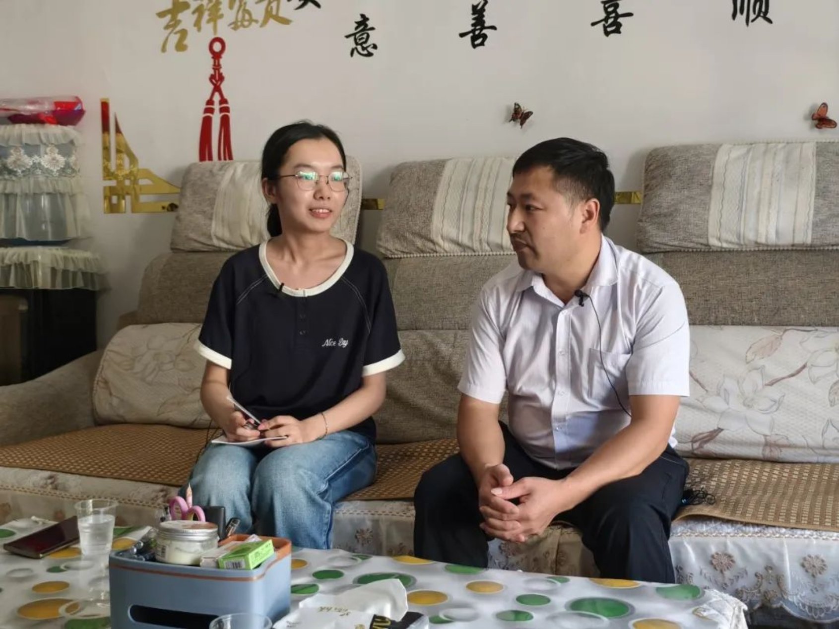 ▲中国人民大学本科生张彦琳访谈脱贫户杨和生