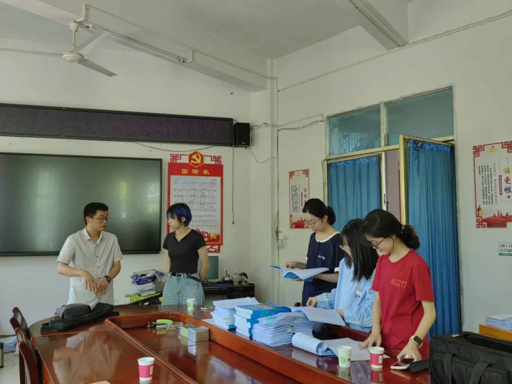 随后,访谈团抵达县农业农村局,中国人民大学硕士生李雨晴访谈了三穗县农业农村局副局长杨胜模。在局内查阅脱贫攻坚资料汇编的过程中,访谈团成员对三穗县在农业产业发展、乡村振兴方面的宝贵经验有了更深入的了解。杨胜模分享了三穗县脱贫攻坚的发展经验,特别提到了“三穗鸭”的产业发展。