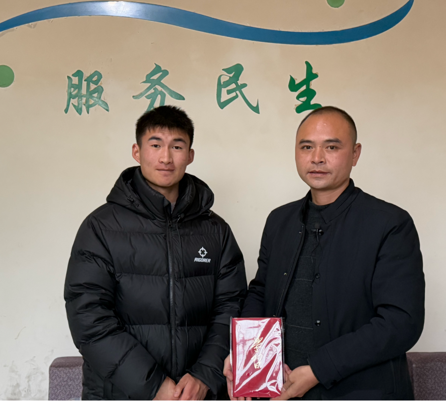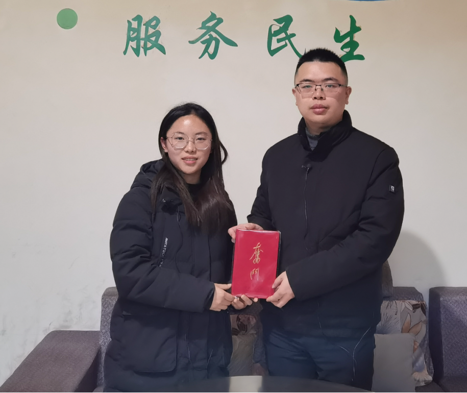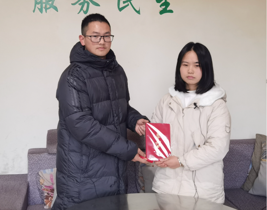 ▲昭通学院管理学院本科生代坦访谈双河苗族彝族乡副乡长张溪尉后赠书留念