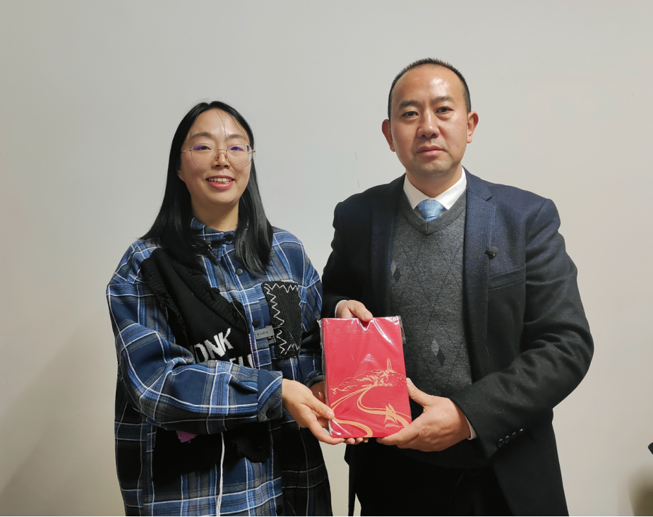 ▲昭通学院马克思主义学院成敏老师访谈威信县农业农村局局长毛子海后赠书留念