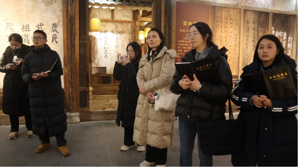 1月16日上午,乌蒙山赤水队到达水田寨花房子中央政治局常委会会议旧址。1935年2月5日中央红军进驻威信水田,在花房子召开了政治局常委会会议,这是扎西会议的其中之一。花房子会议进行了中央政治局常委分工,实现了“博古交权”,从实际上确保了毛泽东同志的军事领导地位。在花房子的对面是红军长征过云南情景体验馆,馆内的布展以红军长征过云南的时间顺序为主线,运用现代高科技技术,生动展现了当年红军长征在云南期间发生的可歌可泣的动人故事。调研团成员们通过参观体验馆,重温长征故事,感悟长征精神,深切感受到了革命先烈的英勇无畏和坚定信念,上了一堂鲜活生动的思政课。