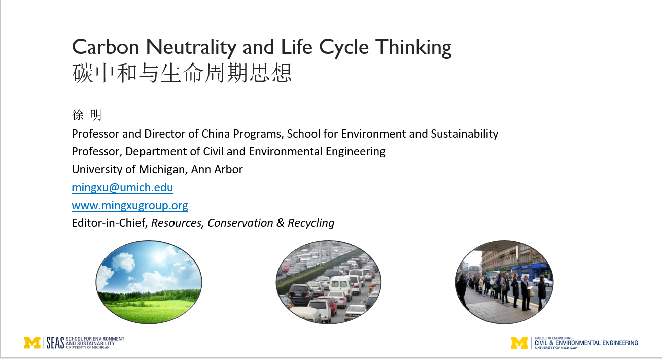 “2021与国际期刊主编‘面对面’学术讲座”系列讲座第十一讲,主讲嘉宾为美国密西根大学环境与可持续发展学院教授教授徐明,讲座由英雄联盟下注 教授魏楚主持。徐明以“碳中和与生命周期思想”为题进行了本次分享。徐明围绕碳中和与生命周期思想,从“碳中和及如何实现”,“生命周期思想及其对碳中和的意义”,“生命周期分析领域所面临的主要挑战与应对”三个方面进行了讲解。在“碳中和及如何实现”部分,徐明介绍了碳达峰和碳中和的相关概念以及碳中和的两个“抓手”,即生产端和消费端。接着通过分析碳中和对企业带来的挑战和机遇得出企业实现碳中和、减少碳足迹的压力和动力越来越大的结论。在“生命周期思想及其对碳中和的意义”部分,徐明介绍了生命周期思想的概念、作用、政策应用及其在碳中和中发挥的作用。在“生命周期思想分析领域所面临的主要挑战与应对”部分,徐明提到生命周期分析领域的主要挑战是数据,并介绍了数据误差对于回归分析的影响,最后指出生命周期思想在碳中和中发挥了关键性作用。