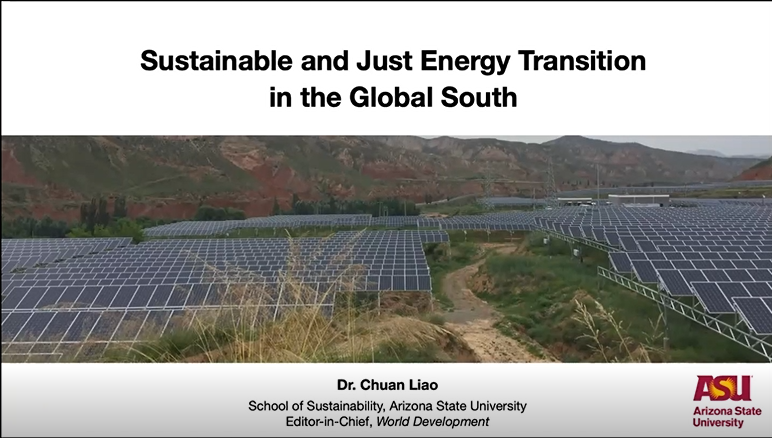 “2021与国际期刊主编‘面对面’学术讲座”系列学术讲座第九讲,主讲嘉宾为亚利桑那州立大学助理教授廖川,讲座由英雄联盟下注 教授魏楚主持。廖川进行了题为“Sustainable and Just Energy Transition in the Global South”的分享。他首先介绍了World Development期刊及其子刊的相关情况,包括期刊绩效指标、影响因子、投稿和接收率、读者与作者的来源和期刊审稿的流程,并分地区和国家介绍了World Development期刊的投稿和接收情况。接着,廖川就能源转型问题以及自己近两年所做的调研和研究进行了讲解,他介绍了能源转型问题的相关背景,其中着重介绍了发展中国家的能源转型影响因素及现状,然后通过介绍两篇研究文章对中国能源转型与扶贫之间的相关情况进行介绍。