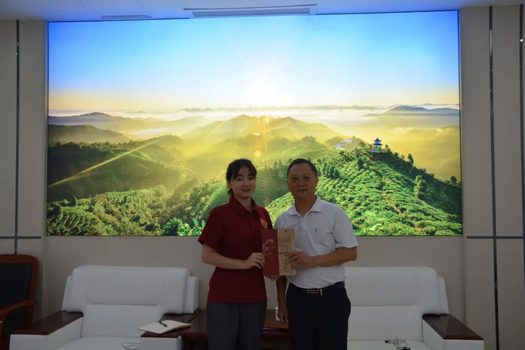 ▲孔儒婧同学向凌云县政协党组成员、三级调研员(原凌云县扶贫办主任)陈永明赠送纪念品