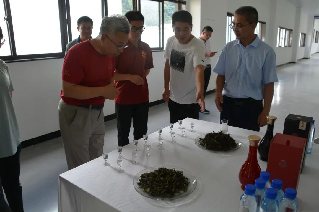 ▲调研团在国晶酒业厂区内了解茶本酒产业发展情况