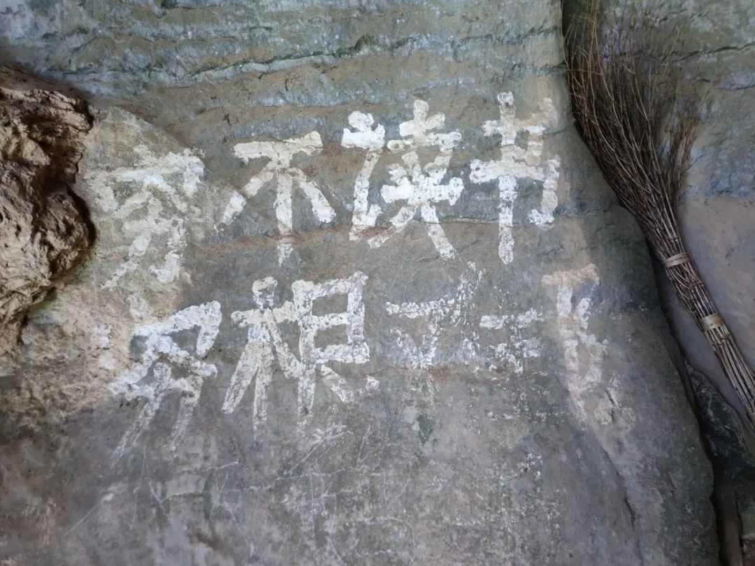 ▲浩坤村猪笼洞旁一处石壁上的宣传语——