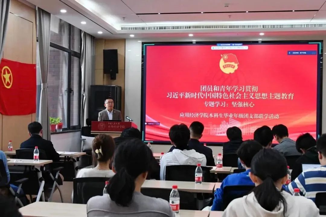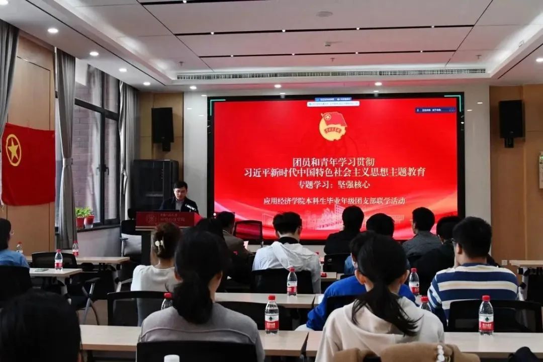 11月8日下午,学院本科2020级团支部围绕“坚强核心”专题,在明商0407组织开展团员和青年主题教育联学。校团委书记熊宇平和团支部联系导师、学院教师苏立出席活动,全体支部团员通过线上线下相结合的方式参与本次学习。