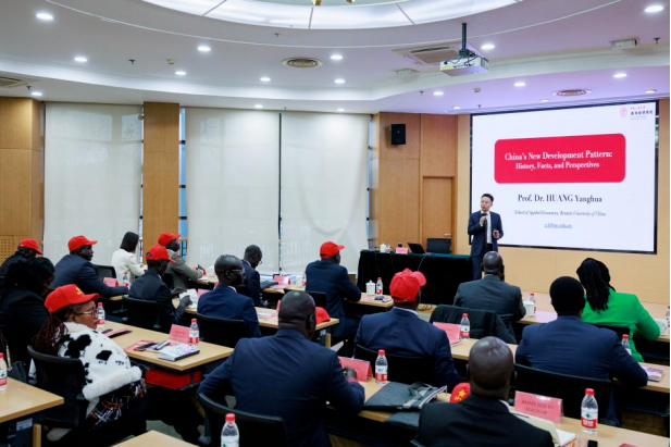 ▲在南苏丹人民解放运动高级领导干部团作专题讲座,“832工程”团队黄阳华教授为干部讲授中国产业发展经验
