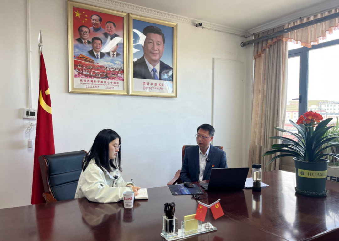 ▲西藏大学经济与管理学院党委副书记、纪委书记师晓娟访谈色尼区原脱贫攻坚指挥部组长翁志强