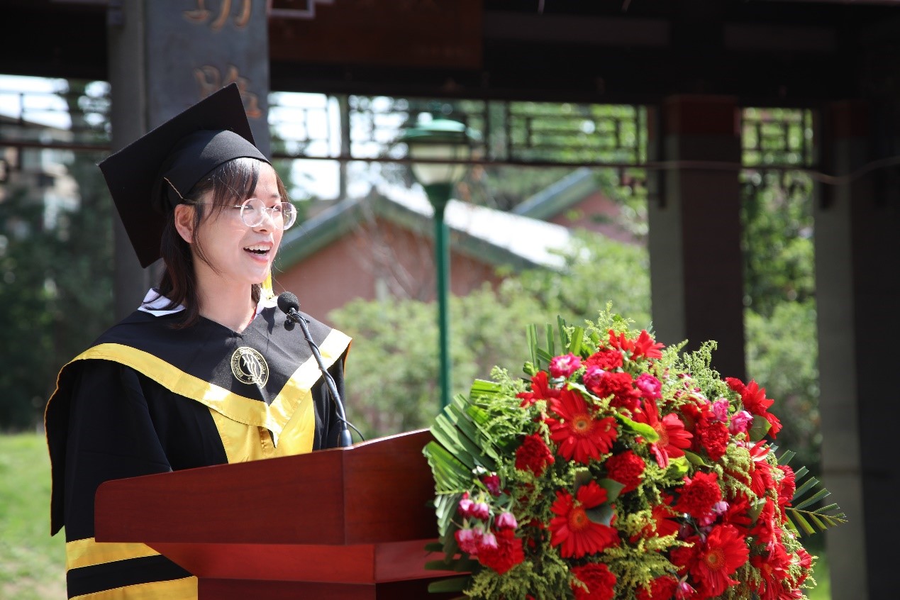 我是产业经济系的张阳阳,非常荣幸能够作为2021届毕业生代表在这里发言。