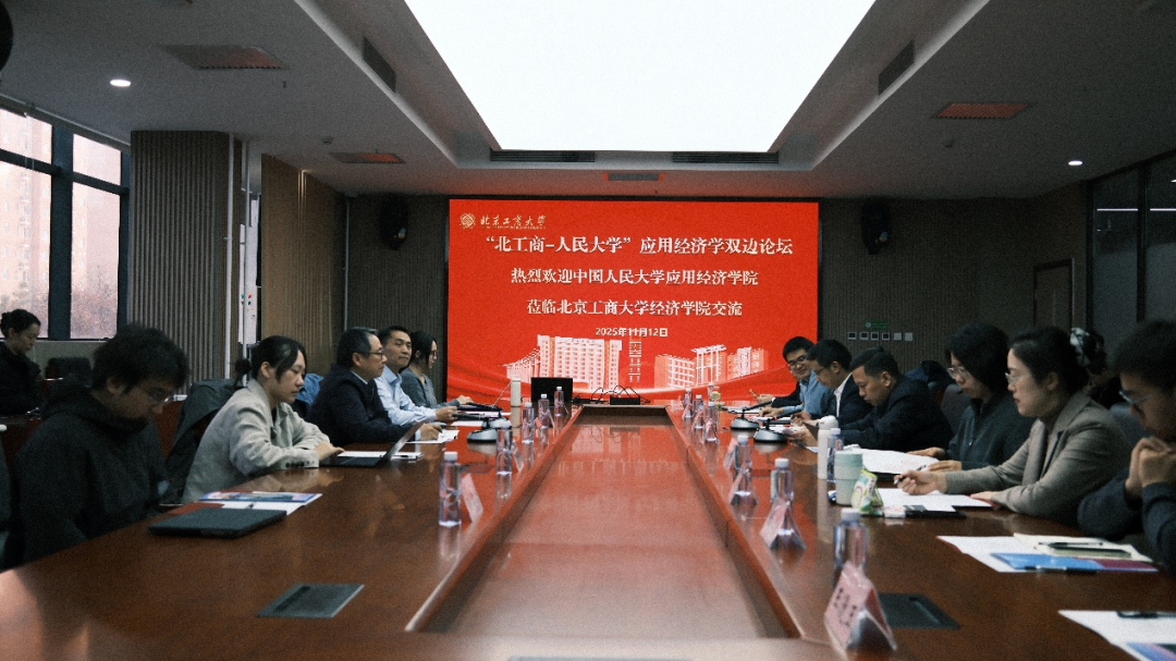 11月12日上午,“北工商-人民大学”应用经济学双边论坛在北京工商大学良乡主校区举办。北京工商大学党委常委、副校长寇红江,英雄联盟下注-英雄联盟博彩 院长魏楚教授、副院长陈占明教授、助理教授栗雅欣、吕媛、孙津韬,北京工商大学经济学院执行院长詹新宇教授、副院长许敬轩教授,人文社科处副处长岳鹏鹏副教授,经济学院金融系王爱萍副教授,经济系韩璇老师、张凡老师,保险系张寓副教授,贸易经济系王漫玉老师等师生代表参加此次论坛交流活动。