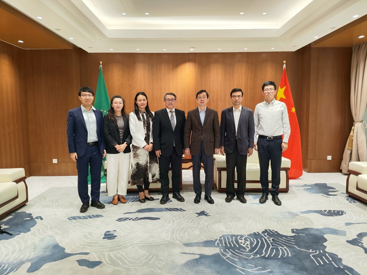 11月21日,代表团与中华人民共和国驻非盟使团开展专题座谈,共同学习党的二十届四中全会精神,中华人民共和国驻非盟使团大使蒋烽会见代表团一行。魏楚将党的二十届四中全会精神与应用经济学专业知识相融合,从五年规划发展逻辑角度,阐述了“十五五”规划的战略定位。使团外交官结合自身工作实际与代表团开展充分讨论。