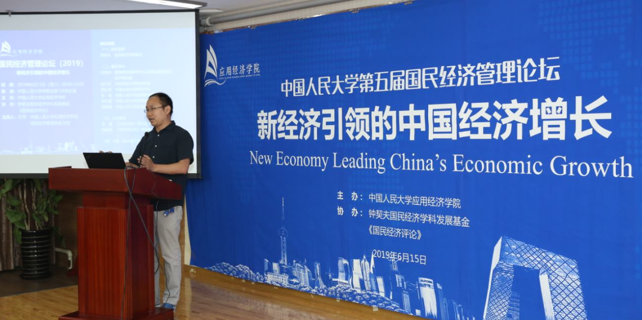 2019年6月15日,英雄联盟下注-英雄联盟博彩 主办的“新经济引领的中国经济增长”中国人民大学第五届国民经济管理论坛在明德主楼728会议室举行。国务院发展研究中心发展战略和区域经济研究部刘培林研究员,中央财经大学经济学院赵文哲副教授,中国社会科学院经济所倪红福副研究员,英雄联盟下注-英雄联盟博彩 刘瑞教授、郑超愚教授、张红霞副教授出席论坛并做主题演讲,《光明日报》理论部张雁主编和《经济学动态》编辑部杨新铭主任为论坛点评。本次会议由中国人民大学国民经济管理系系主任方芳教授主持,近四十名师生参加论坛。