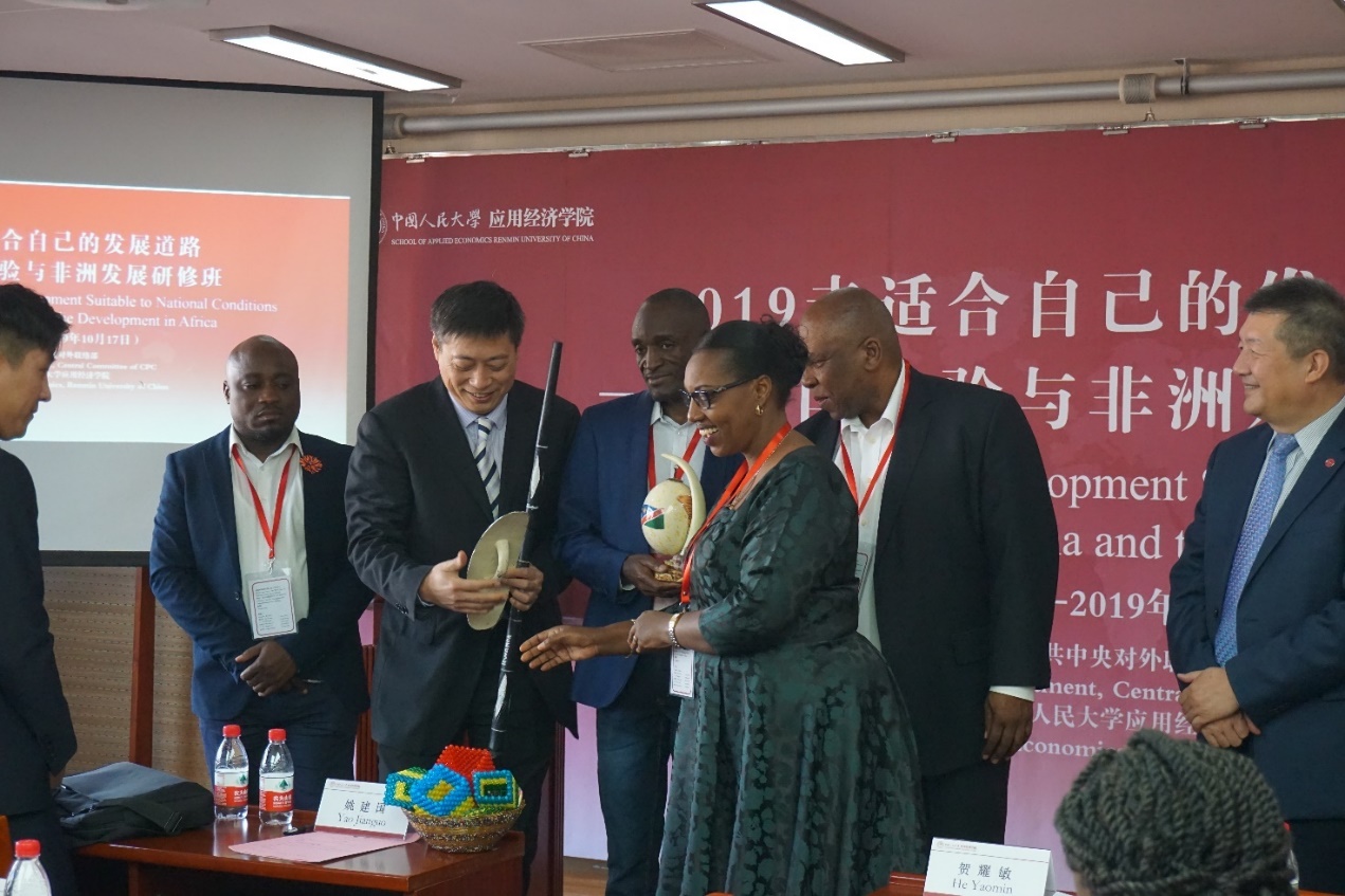 外方代表在研修班开班式上向中联部国际交流中心副主任姚建国赠送了礼品。