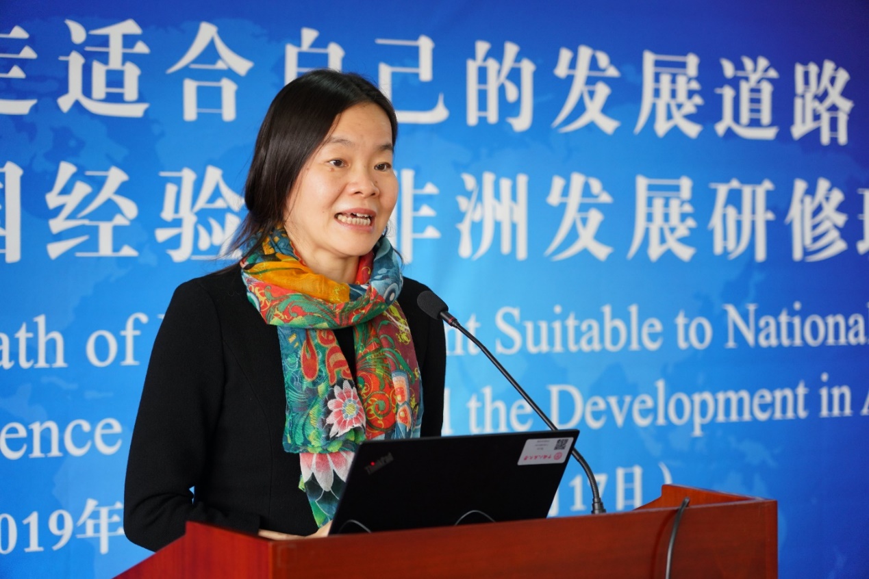 饶惠华副主任在致辞中表示,感谢人民大学对研修班给予的热情周到的安排和支持。她就中国减贫扶贫取得的成就及其背后原因分享了心得体会。饶主任认为,中国扶贫减贫成就得益于中国共产党的坚强领导,得益于精准扶贫方略的有序实施,得益于制定的较为完善的脱贫攻坚政策体系。举办本次研修班,是强化中非合作、注重非洲内生增长和改善民生的具体表现和重要举措。中国愿意继续加强同非洲兄弟国家和人民之间的合作交流,将中非双方关系推向新高度。