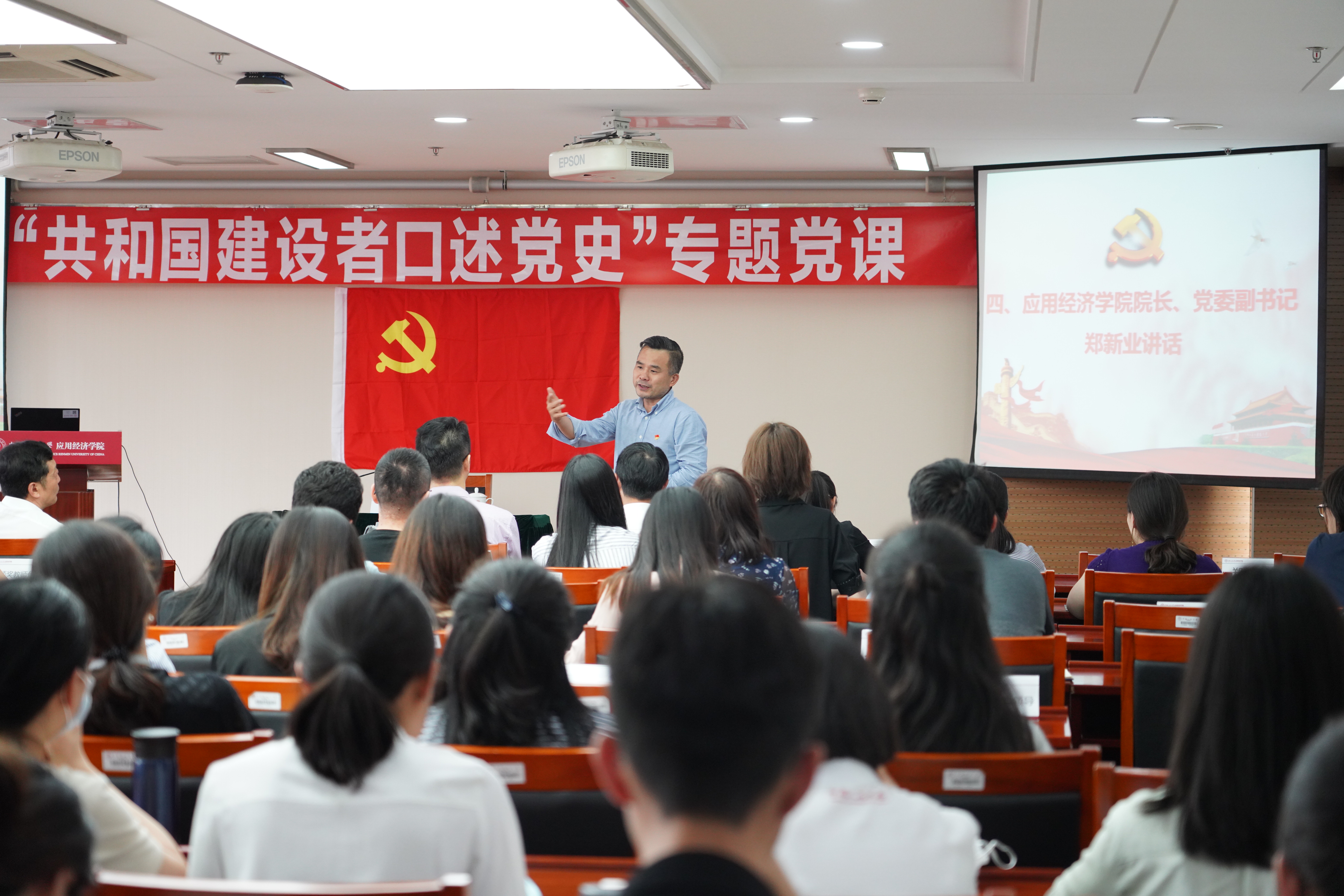 为迎接中国共产党成立100周年,深入开展党史学习教育,6月24日下午,中国人民大学当代政党研究平台、英雄联盟下注 党委、人事处人才办联合党支部在明德主楼728会议室共同开展“共和国建设者口述党史”专题党课。本次党课邀请河南省平顶山市政协副主席、鲁山县委书记杨英锋讲授,鲁山县相关同志、各主办单位师生党员代表参加学习。党课由英雄联盟下注 党委书记宋东霞主持。