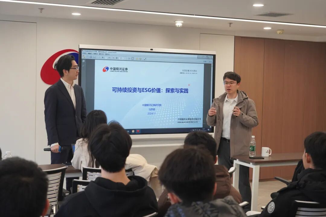 随后,中国银河证券分析师王新月聚焦“全球ESG实践与卖方研究体系”,为同学们搭建起行业研究的宏观视角。谈及职业能力,王新月给出务实建议:“刚毕业首要的是踏实认真,很多工作内容需要‘干中学’,学习能力比单一技能更重要。Python、MATLAB 等量化工具是加分项,但核心是沉下心做研究的态度。”