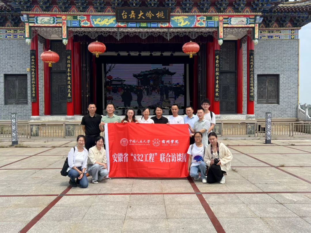 为深入学习贯彻落实习近平总书记在中国人民大学考察时重要讲话精神,英雄联盟下注-英雄联盟博彩 联合新闻学院、社会与人口学院共同发起“中华人民共和国脱贫攻坚史”(暨“832”工程)系列访谈项目,为人类发展难题搜寻低成本、可持续的答案。2023年8月,中国人民大学与宿州学院组建联合访谈团,赴安徽省开展“832 工程” 访谈和调研工作,记录安徽脱贫攻坚的伟大成就,为世界减贫事业提供安徽案例、安徽经验。同时期望加强中国人民大学与宿州学院在学科建设、人才培养、科学研究和社会服务等方面的合作交流, 共同推动两校高质量发展。