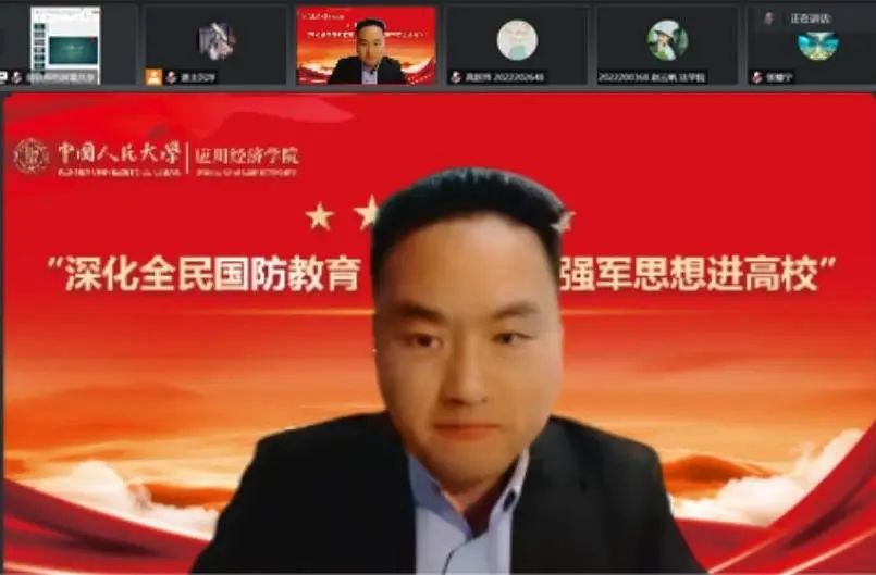 北京市教委体卫艺处国防教育负责人、二级调研员凌长龙带来“当代大学生要做落实深化全民国防教育的排头兵”主题讲座。凌长龙立足首都高校国防教育现状,介绍了首都教育系统国防教育的特点,号召人大师生提高思想站位、强化使命担当、发挥人大优势,传承军政结合的优良传统,营造良好的国防教育氛围,通过学习习近平强军思想,使关心国防、热爱国防、建设国防、保卫国防成为当代大学生的思想共识和自觉行动,引导学生从国防教育的被动参与者转变为主动作为者,为国防和军队建设储备更多高素质后备力量。