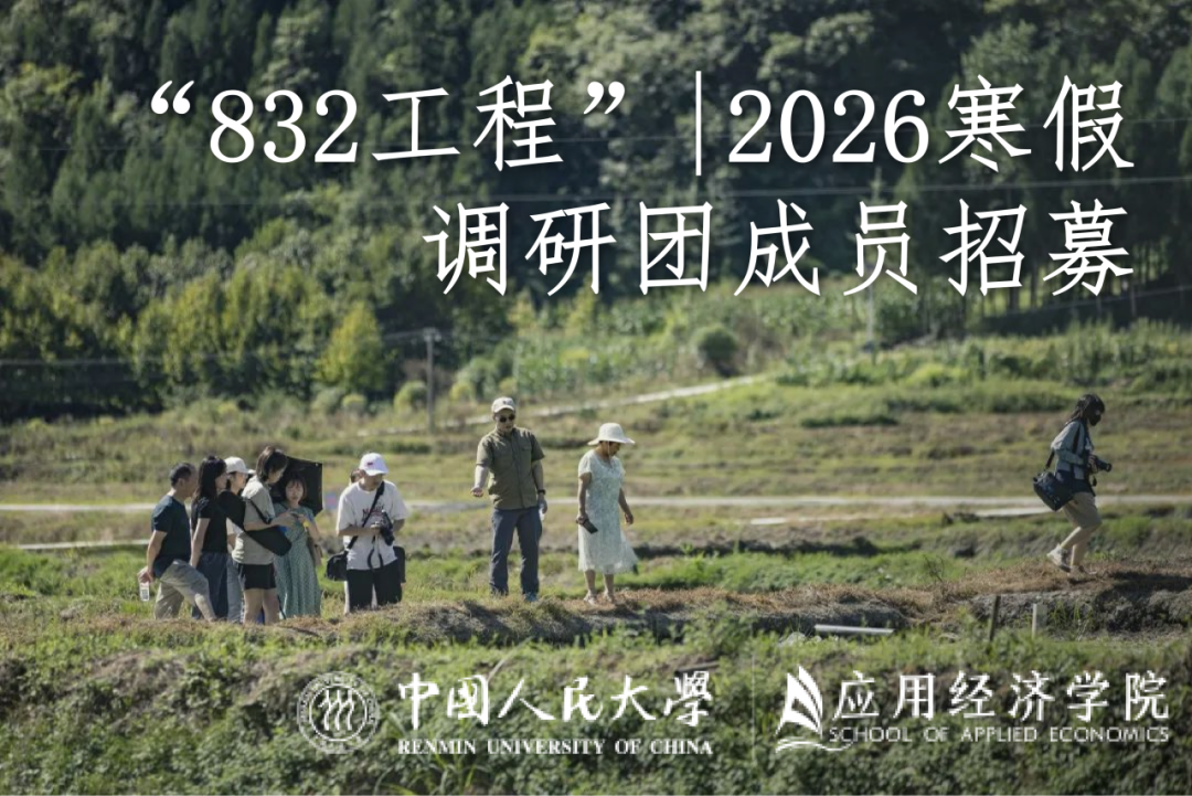 “832”工程现面向中国人民大学全体本硕博在校生、在职课程培训班学员及校友招募2025-2026学年寒假调研团队成员。