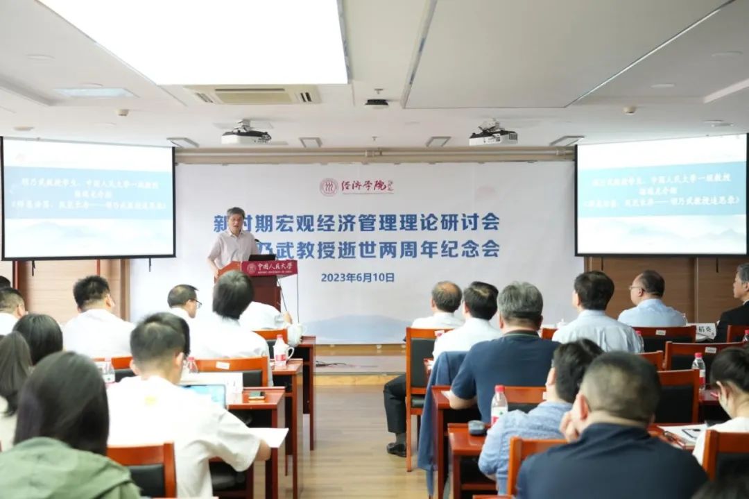为铭记胡乃武教授为中国宏观经济理论发展和人才培养所作出的杰出贡献、赓续胡乃武教授的学术思想和教育精神,6月10日下午,新时期宏观经济管理理论研讨会暨胡乃武教授逝世两周年纪念会在中国人民大学举办。第十四届全国政协常委、经济委员会副主任、国家发改委原副主任、纪念胡乃武教授教育基金理事会顾问宁吉喆,中国社会科学院副院长、学部委员、中国社会科学院大学党委书记高培勇,中国人民大学原副校长、一级教授吴晓求,上海财经大学党委副书记、校长刘元春,中国人民大学副校长王轶,中国人民大学一级教授杨瑞龙,清华大学经济管理学院中国与世界经济研究中心主任李稻葵,中国人民大学经济学院党委书记、院长刘守英,中国人民大学出版社党委书记兼董事长李永强,胡乃武教授师门弟子代表、亚金协创始秘书长、中银协原专职副会长杨再平,中诚信董事长兼总裁闫衍,中国社会科学院生态文明研究所所长张永生等莅临出席,经济学院和英雄联盟下注 师生代表参加纪念会。经济学院党委书记、院长刘守英主持开幕式。